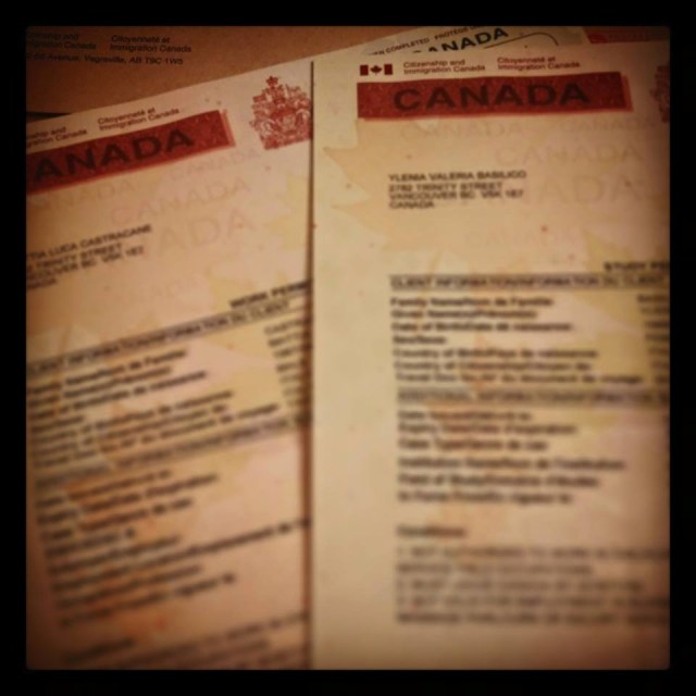 Qualche giorno fa ci sono arrivati i nuovi visti! Io sono ufficialmente tornata una studentessa mentre Mattia ha un open work permit, che gli permette di lavorare liberamente e per qualsiasi datore di lavoro! Io frequenterò un corso di Marketing al BCIT, uno dei migliori istituti in zona! Spero non sia troppo difficile.. ormai sono 3 anni che ho lasciato la scuola, chissà se mi ricordo ancora come si fa a studiare! =) Sono contenta di iniziare questa nuova avventura anche se significa che potrò lavorare solo 20 ore a settimana (per legge) e quindi saremo un po’ tirati economicamente! Vedremo come andranno le cose, ma sono sempre fiduciosa e ottimista!