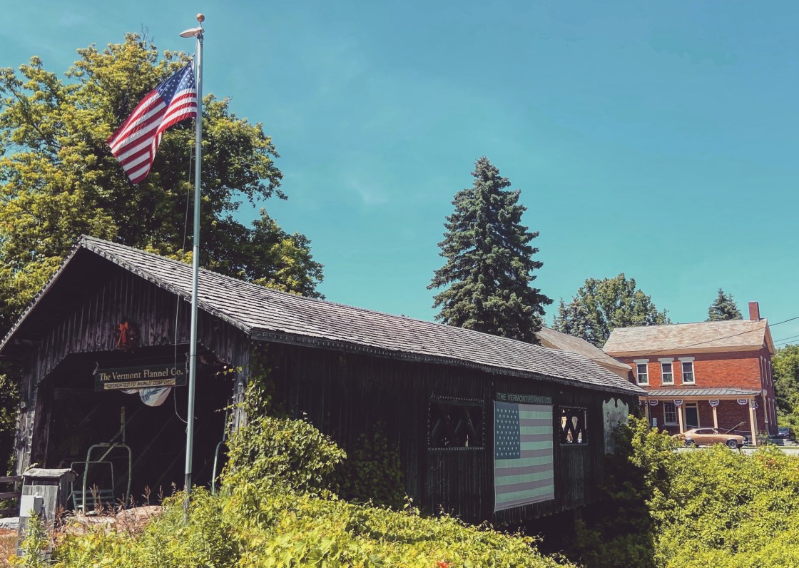 Proseguendo sulla Ethan Allen Highway verso Vergennes, ci siamo imbattuti in un paio di posti carini. Per gli amanti della flanella e dei ponti coperti c’e questo negozio, proprio sul bordo della strada, che ha incluso un bellissimo ponte.