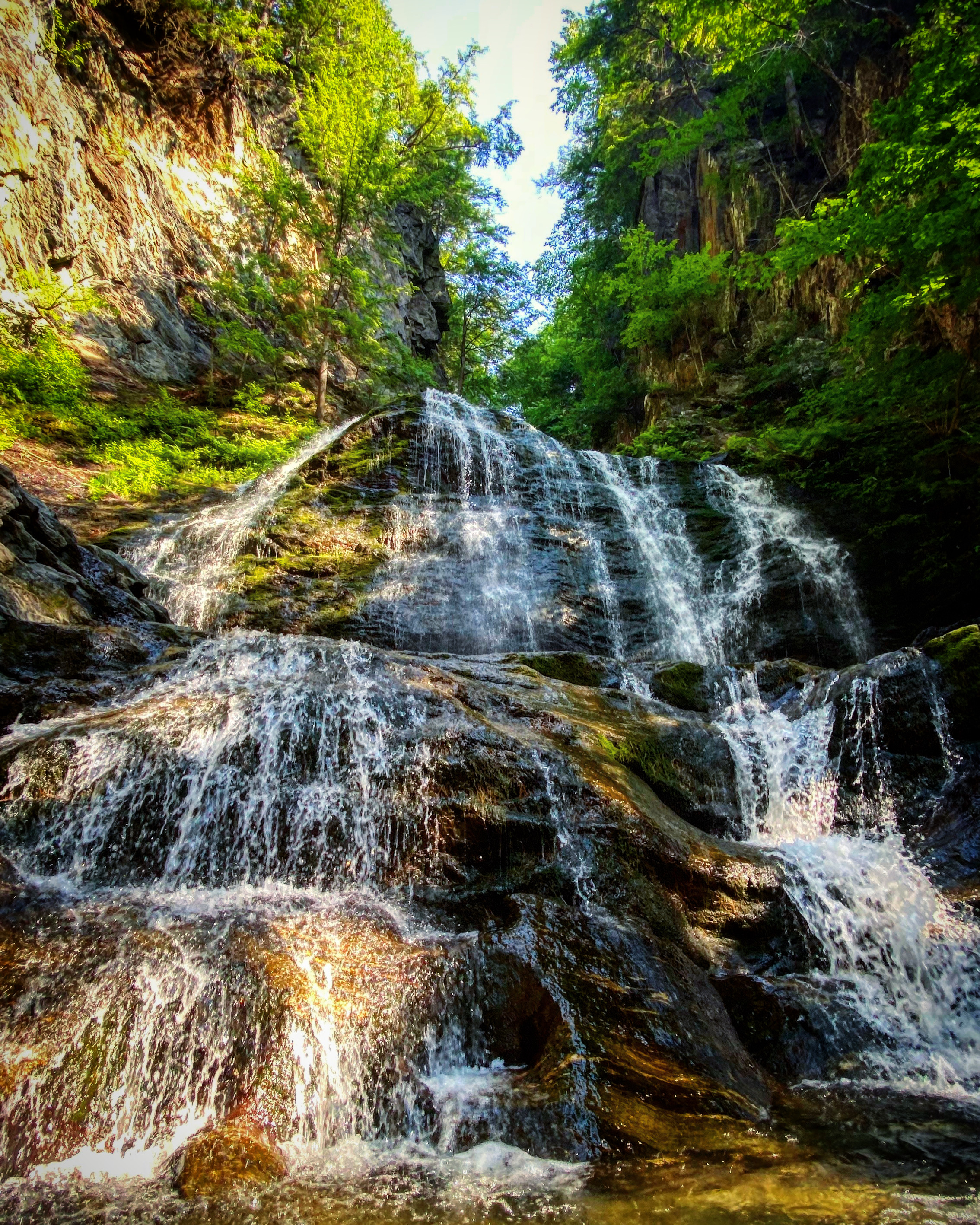 Il tour della fabbrica di Ben & Jerry’s era chiuso, come tutto durante questa gita in verita’, ma almeno siamo riusciti a gustarci un bel gelato in preparazione della tappa successiva… una bella camminata nei boschi per raggiungere una stupenda cascata!!! Con il caldo afoso che c’era ci voleva proprio un bel bagno nell’acqua gelida! La cascata si trova poco a nord di Stowe, un paesino minuscolo ma carinissimo, famoso soprattutto per i resort e le piste sciistiche molto gettonate in inverno. Per raggiungere Moss Glen Falls ci abbiamo impiegato veramente poco, una camminata di 15 minuti dal parcheggio. Per gli amanti della natura c’e’ anche tutto un percoso da seguire dopo la cascata, ma noi ci siamo fermati li’ a goderci il fresco.