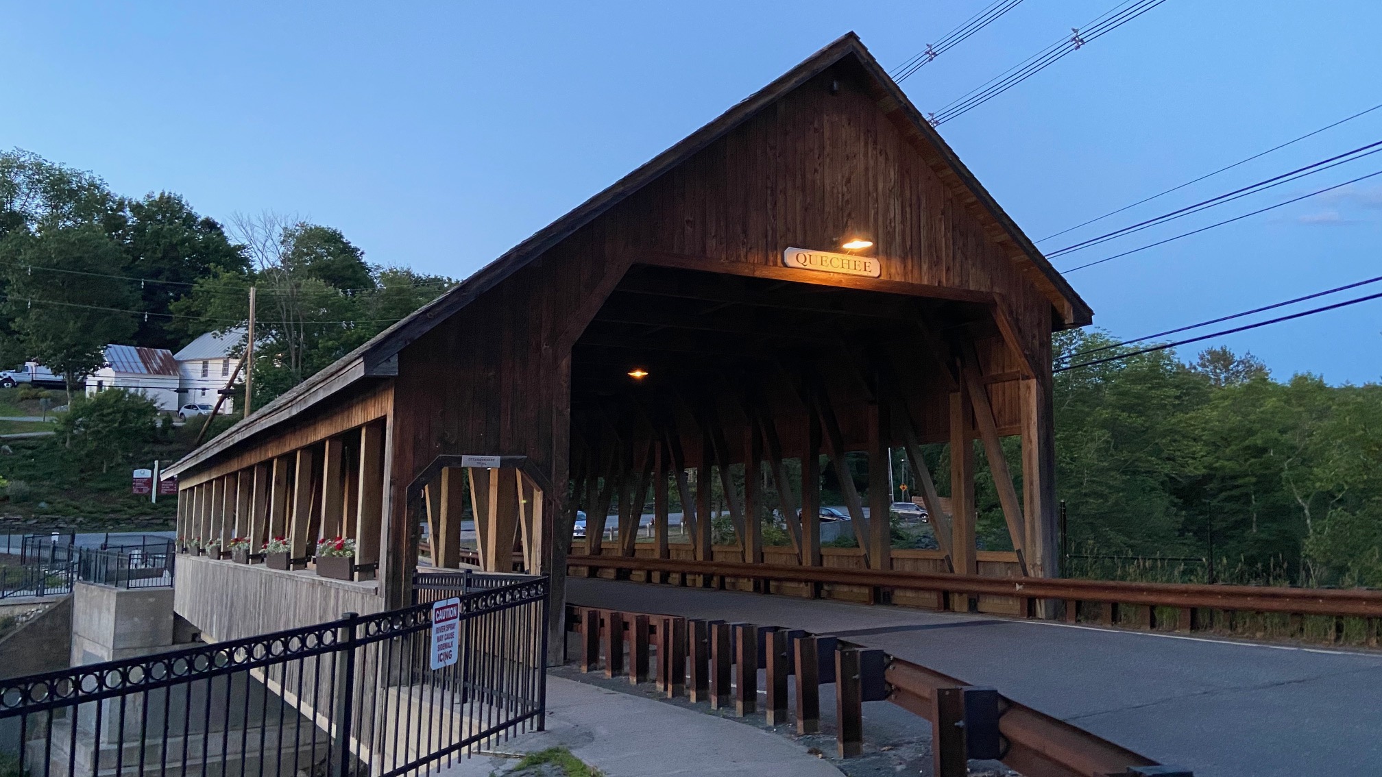 Da qui noi abbiamo deciso di tirare dritto fino a Quechee, il posto in cui abbiamo passato la terza e ultima notte. Onestamente non ho trovato nulla di interessante sulla strada mentre mettevo giu’ l’itinerario, per cui ne abbiamo approfittato per arrivare un paio di ore prima di cena e rilassarci un po’. A Quechee c’e’ ben poco da vedere, ma si trova di fianco a Woodstock che sara’ la nostra tappa finale della domenica.